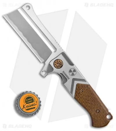 This Mini Cleaver from Andre de Villiers has a titanium handle with two tone “Danger” bolster and a Kevlar inlay. Its modified cleaver blade is made from CPM-S35VN steel with a two-tone Hamon finish. The Mini Cleaver folder is a beefy, solid built titanium frame lock knife with all the heft you’ll ever need. It offers an optimal shape that caters to in-hand comfort and control. Item includes a titanium backspacer with a Kevlar inlay.