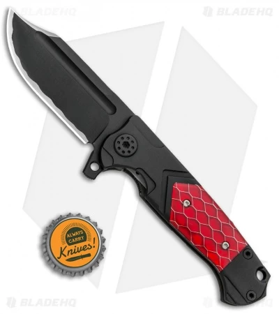 This Pathfinder Mini model sports a black coated titanium handle with red C-Tek inserts and a black finished bowie blade. Andre de Villiers has scaled down his extremely popular Pathfinder design, for a more comfortable pocket carry.
