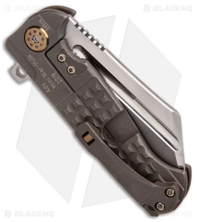 This Custom Mini War Hulk has a titanium handle with an knurled copper inlay and a two-tone Hamon finished cleaver blade made from CPM-S35VN steel. The War Hulk folder from Andre de Villiers is a beefy, solid built titanium frame lock knife with all the heft you could ever need. It offers an optimal shape that caters to in-hand comfort and control. The copper accented titanium backspacer lends a hole for lanyard attachment and the milled pocket clip is a solid touch to this outstanding knife.
