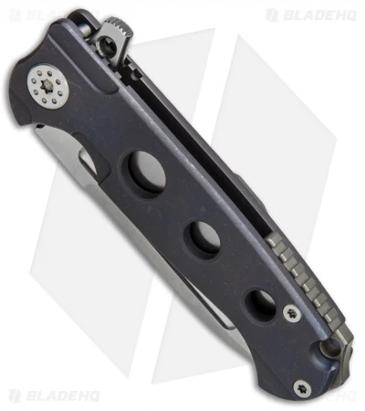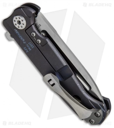 This Pathfinder Mini model sports a blue 3D titanium handle with a stonewashed finish and a bead blasted Hamon style blade finish. Andre de Villiers has scaled down his extremely popular Pathfinder design, for a more comfortable pocket carry.
