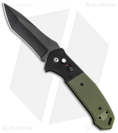 Bear OPS Bold Action V Tanto Automatic Knife Black/Green G-10 (3.75″ Black)