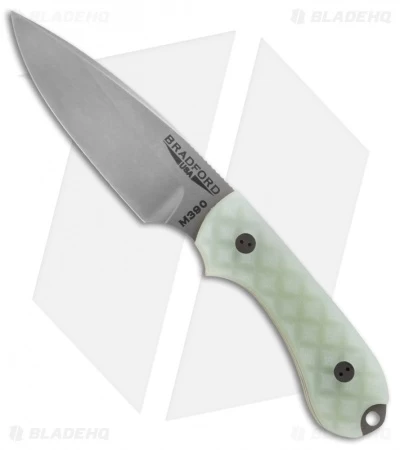The Guardian3 is a relatively compact fixed blade that is designed to handle the work load that might typically fall upon a heavy duty everyday folder. Bradford Knives uses Bohler M390 steel with a double temper and cryo treatment for exceptional blade characteristics. Machined G-10 scales offer extreme grip without being abrasive. Each knife includes a premium leather sheath with belt loop and plastic blade insert.