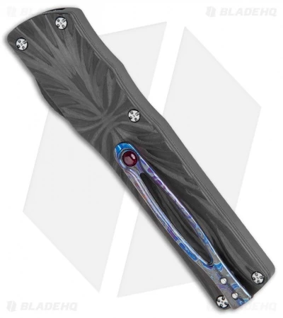 This custom Small Twist Tighe OTF offers a stunning Brian Tighe design with a 3D machined aluminum and Carbon Fiber handle. The damasteel blade comes in a dagger style with a plain edge. Item includes a Timascus pocket clip and a carbon fiber thumb slide. Add an instant upgrade to your knife collection with the Brian Tighe Custom OTF.