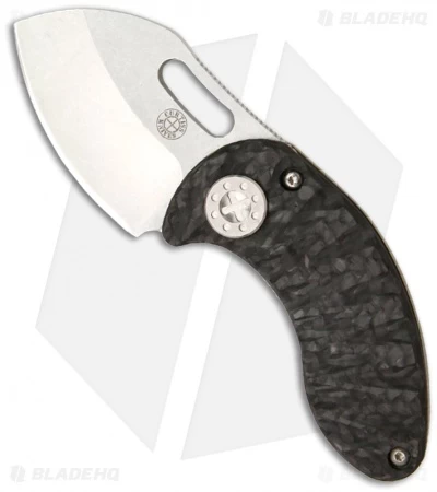 The Nano Framelock from Curtiss Knives is a small knife that scores big with performance and looks. It features a titanium framelock with an open build and CNC machined carbon fiber handle. The new over-sized pivot acts as a lockbar stabilizer. The stonewashed blade is CPM-154 steel with a thumb slot for opening. The spine of the blade has jimping and the curved handle has an excellent feel in hand. The Nano has a tip-up carry pocket clip and comes in a padded nylon pouch.