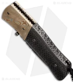 Burr Oak Knives Coffin Nail Flipper Knife Mokume/Brass CF (3.5″ San Mai)