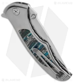 Brian Tighe Custom Tighe Drip Button Lock Knife Blue Ti (3.75″ Acid Wash) #9