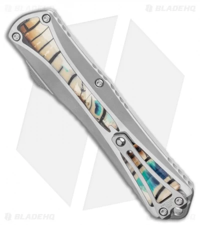 This custom model of the Manticore-X comes equipped with a stunning mirror-finished dagger blade and a polished steel handle with blue/brown Mammoth Ivory inlays. Includes an official “Certificate of Badassery” and a protective pouch.