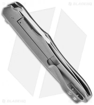 This hand-made flipper from Jason Clark is a smooth, precise folder with great looks and action. The handle has a titanium liner, framelock and pocket clip along with a smooth contoured black C-Tek scale and fileworked stainless steel back spacer. If you’re not familiar with C-Tek, it is a honeycomb patterned material that is infused with resin; it’s a very cool material! The modified drop point blade is bead blast finished CPM-154 steel with hollow main grinds and swedge ground spine. The blade opens with ease thanks to the IKBS bearing system. This Jason Clark folder is an excellent choice for everyday carry and comes with a tip-up carry titanium pocket clip.