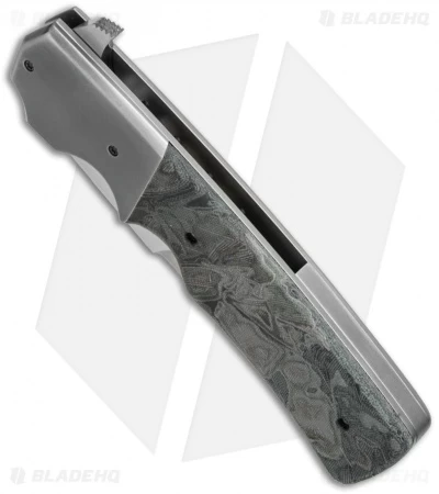 This Tanto flipper from Jason Clark is a hand-made knife with high quality material and craftsmanship. It features a unique Micarta “burl” handle material from Shade Tree Composites that’s made from surplus military uniforms. Matched up with the Micarta, the handle sports a gray finished titanium bolster, liner and frame lock tab. The hollow ground tanto blade deploys with ease using the flipper and a smooth IKBS pivot. This Jason Clark folder is an excellent choice for collection and high rolling everyday carry.