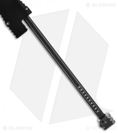 This Nemesis IV knife has a black anodized aluminum handle that features a milled contoured surface. Microtech has also customized the hardware with the triangle screws and triangle “topographical” firing button. The dagger blade is satin finished S35-VN steel with both edges partially serrated.