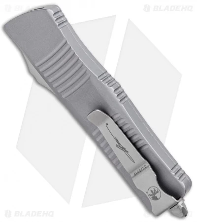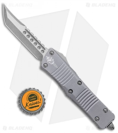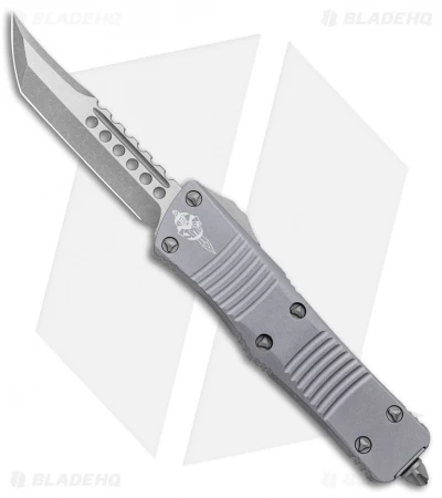 This Troodon automatic knife features an Apocalyptic Hellhound Tanto blade and a gray anodized 6061-T6 aluminum handle.