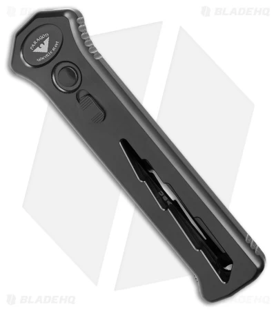 The Paragon PARA-X OTF knife is the next generation of the ATKO-10. This Asheville Steel automatic is a single action out-the-front knife, just push the button and the blade fires out the front of the handle. To close the blade just press the button and use the retracing lever to pull the blade back in. The PARA-X has a sliding safety under the firing button and a pocket clip for easy tip-down carry. Made in the USA and new in box.