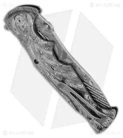 Brian Tighe Custom Tighe Breaker Recurve Automatic Knife BB Ti (4″ Damasteel)