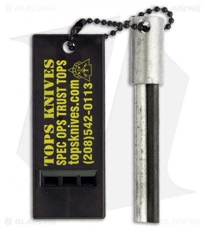This tool includes a Kydex sheath with spring clip along with a 3 rod fire-starter and 126 DB emergency whistle.