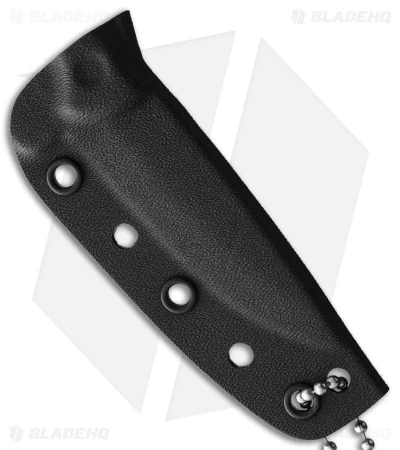 Made from 1095 carbon steel, the Mini Scandi Survival knife is a tough little knife with micarta handle scales. Large forward finger choil allows for easy control of the cutting edge. Easily carried with the black kydex sheath with beaded neck chain.